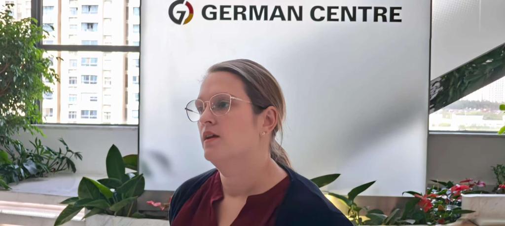 太倉德國中心負責人馬莉珂接受記者采訪。新華社記者劉力航 攝