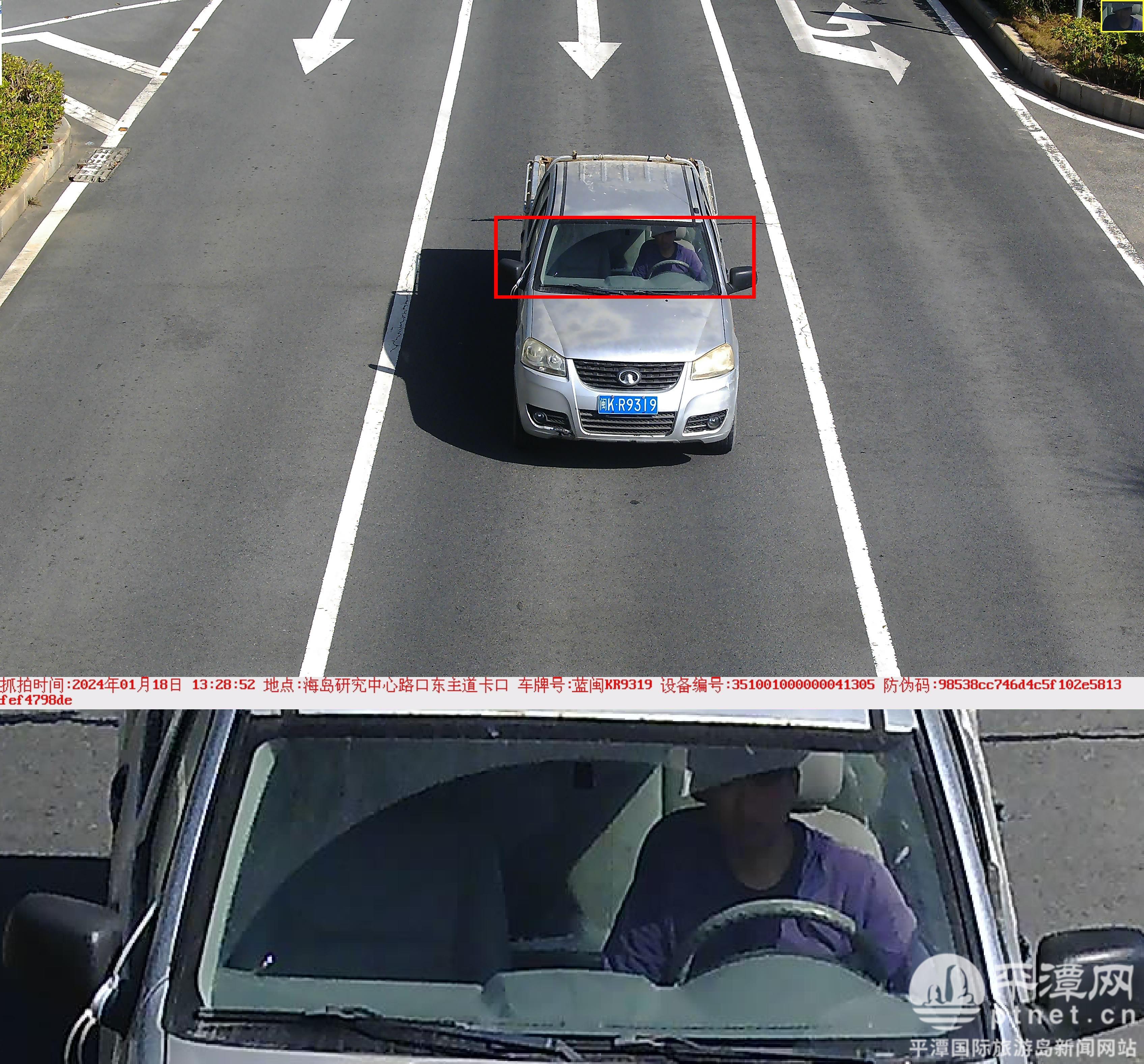 2024年01月18日13時28分52秒 海島研究中心路口東主道卡口 閩KR9319未系安全帶