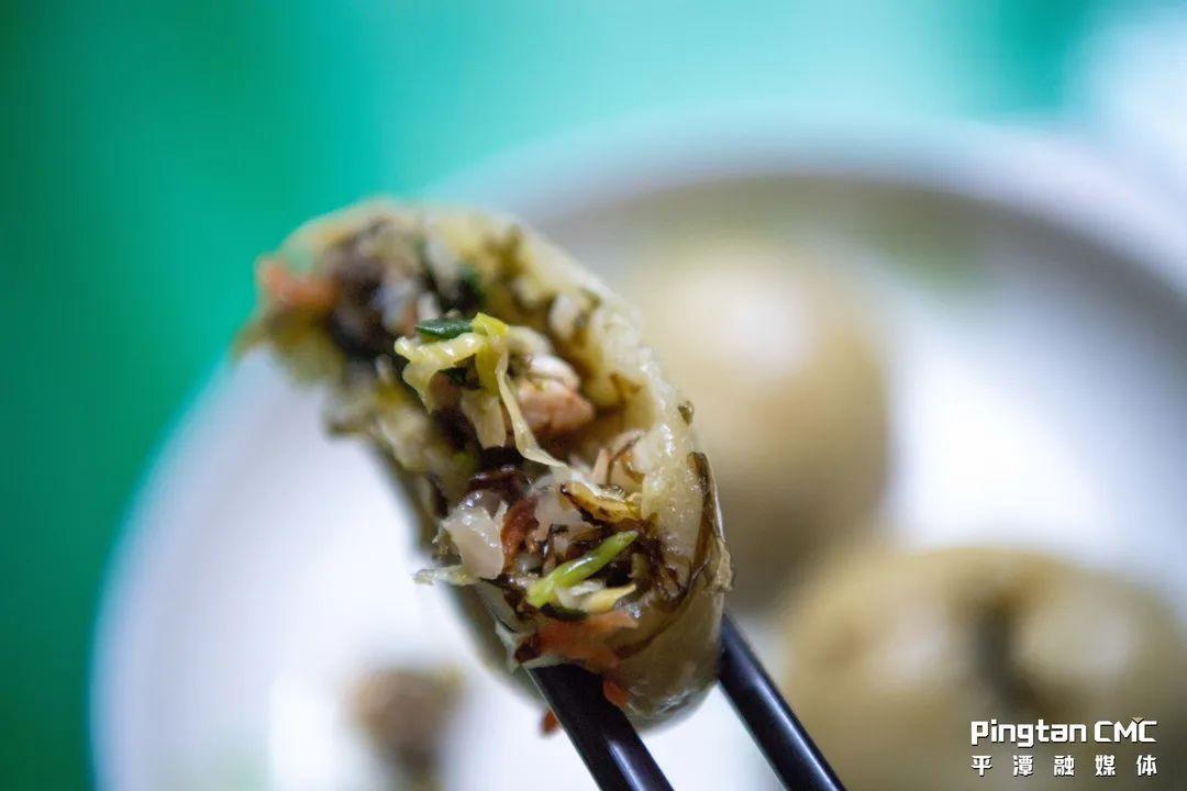 “來(lái),嘗嘗看。”小林遞來(lái)一雙竹筷。我輕輕夾起一個(gè),那觸感奇妙極了——外皮Q彈得像是會(huì)呼吸,卻絲毫不粘筷子。一口咬下,先是地瓜粉皮的溫柔抵抗,接著“啵”的一聲,鮮美的汁水瞬間溢滿(mǎn)口腔。紫菜的咸鮮、蝦米的甜潤(rùn),仿佛把清晨趕海的漁獲都包了進(jìn)去;花生的脆香與蔬菜的清爽交織在一起,層次豐富得恰到好處。