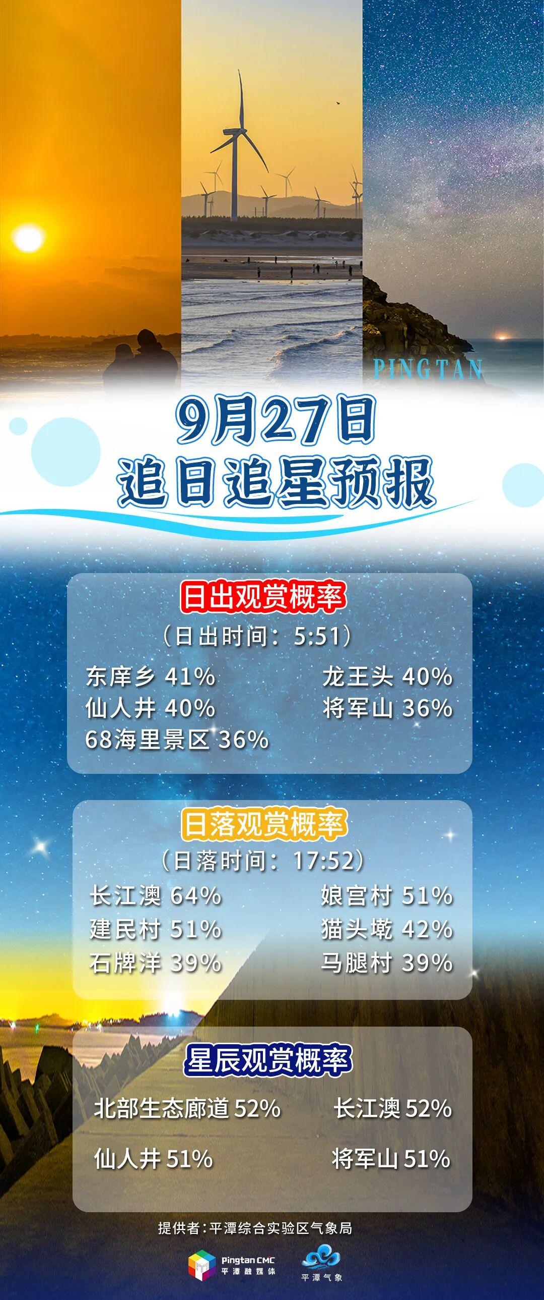 追日追星預報丨9月27日,“追日”概率長江澳64%,“追星”概率北部生態廊道52%