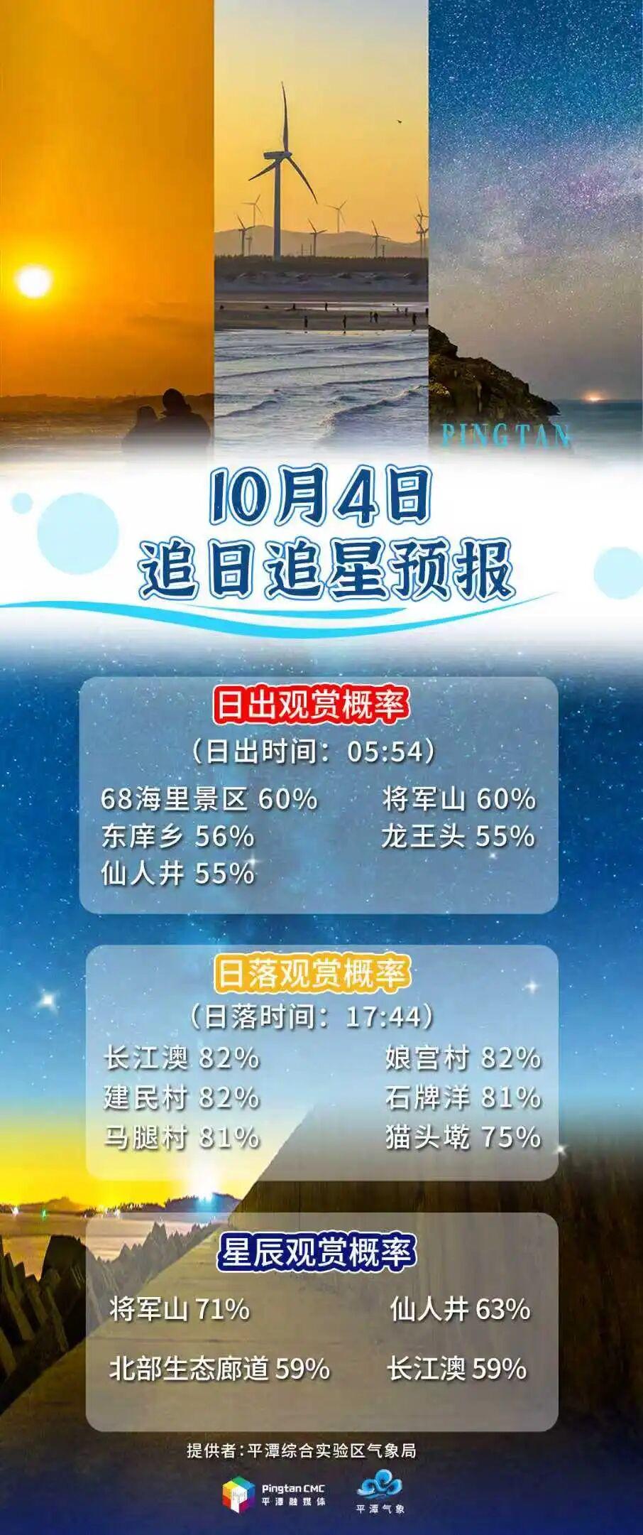 追日追星預報丨10月4日,“追日”概率長江澳82%,“追星”概率將軍山71%