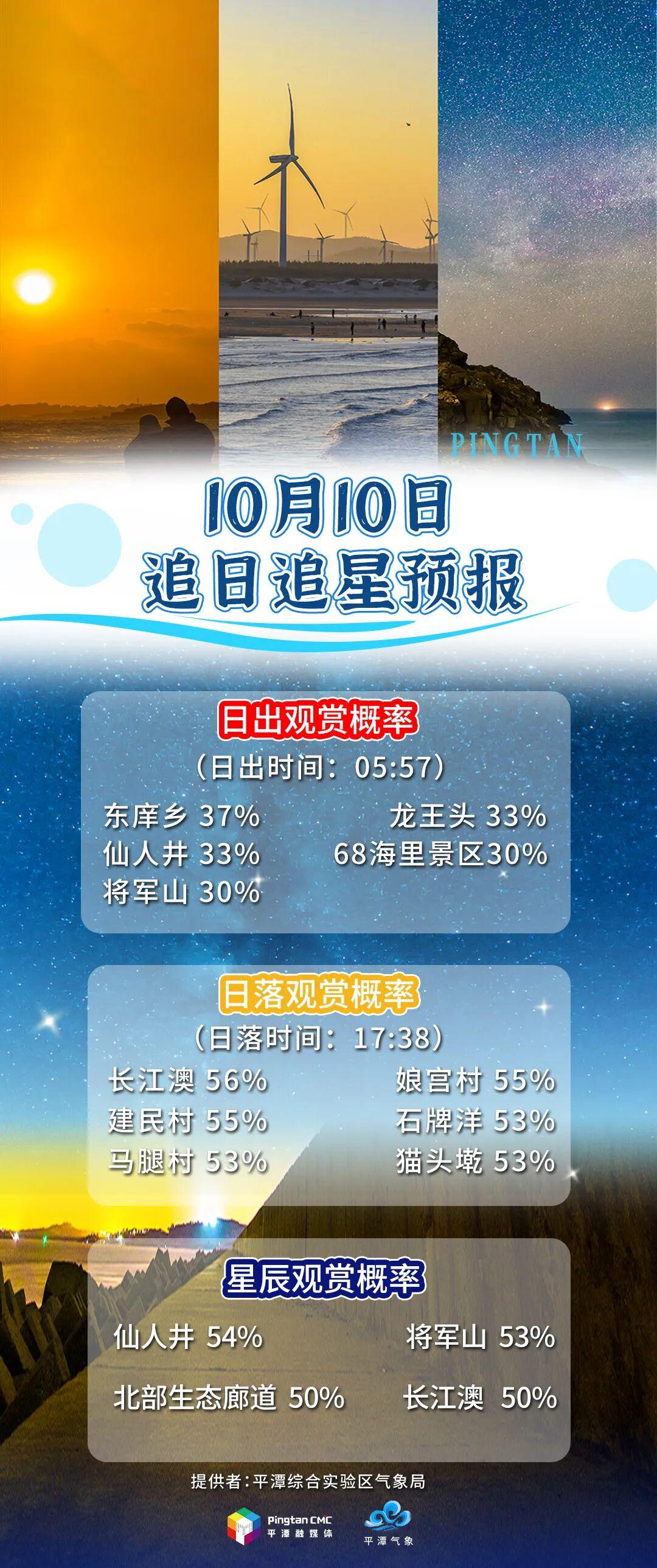 追日追星預報丨10月10日,“追日”概率長江澳56%,“追星”概率仙人井54%