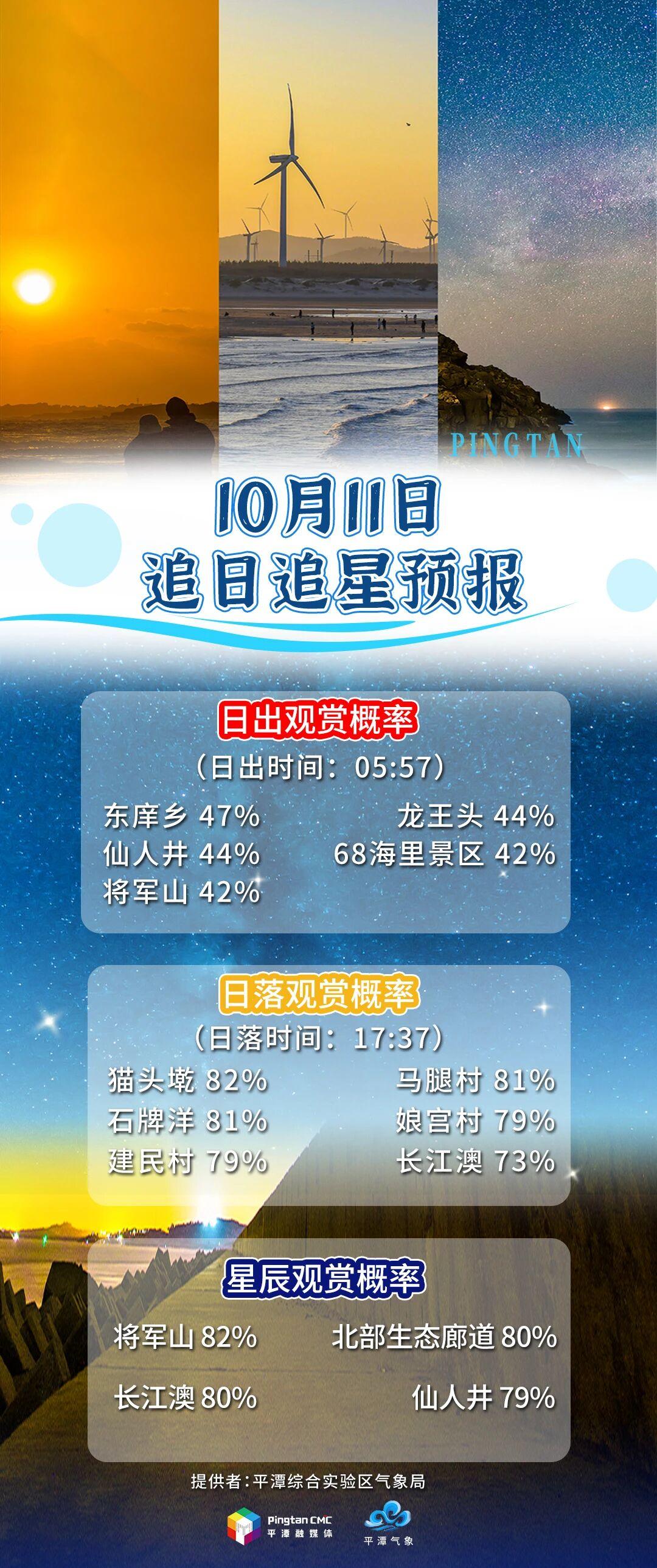 追日追星預報丨10月11日,“追日”概率貓頭墘82%,“追星”概率將軍山82%