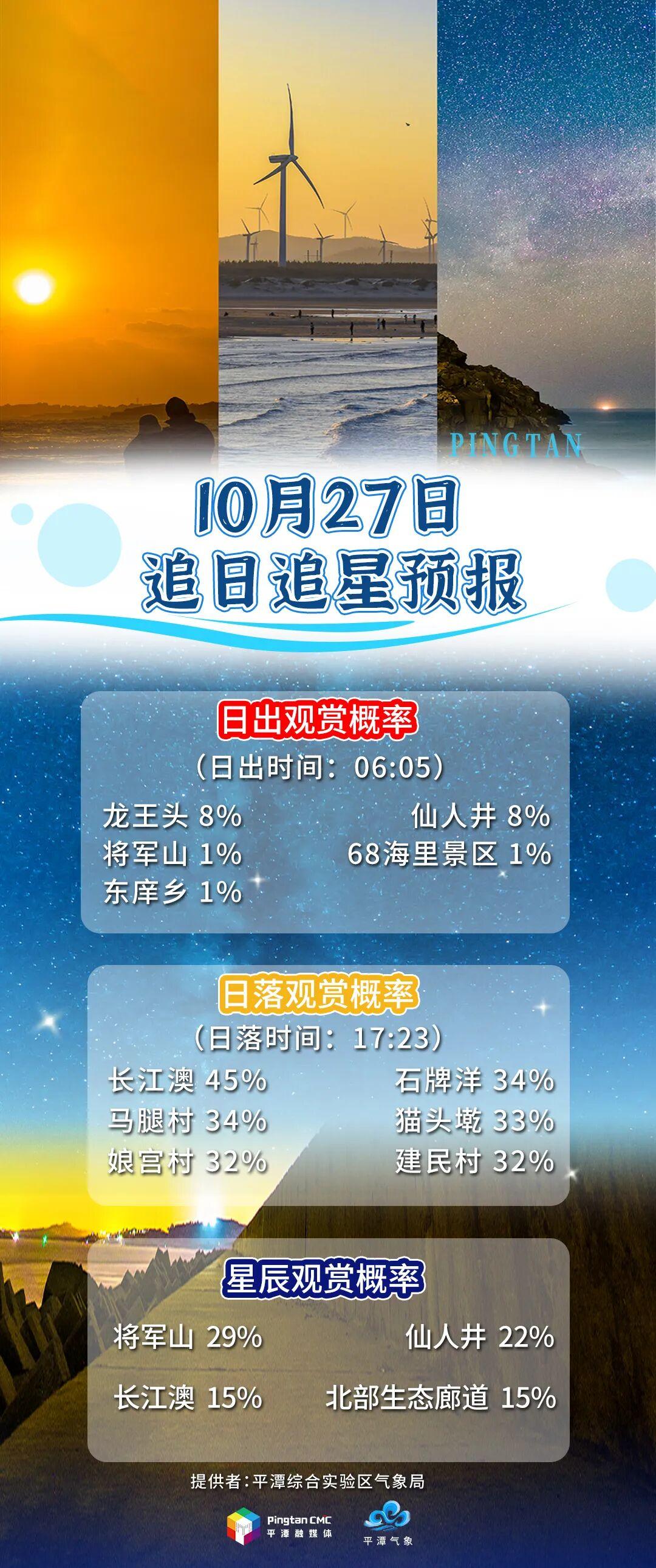 追日追星預報丨10月27日,“追日”概率長江澳45%,“追星”概率將軍山29%