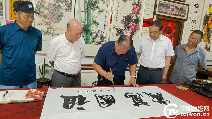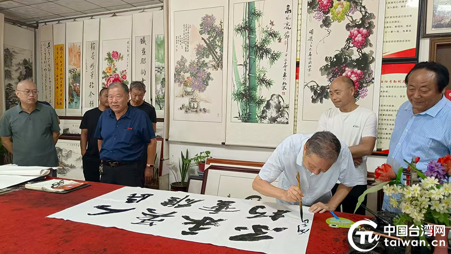 中國臺灣網7月23日訊 7月17日上午,駐馬店市對臺交流基地天中書畫藝術研究會、天中書畫院聯合舉辦紀念中國人民抗日戰爭暨世界反法西斯戰爭勝利80周年書畫交流活動。眾多書畫家與臺胞、臺屬、書法愛好者齊聚一堂,以筆墨為媒,用一幅幅鮮活的藝術作品緬懷崢嶸歷史、致敬革命先烈、鏈接融合兩岸情誼。