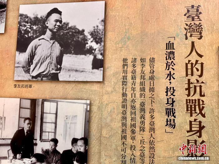 其中,展覽“臺灣人的抗戰身影”部分介紹,盡管身處日據之下,許多臺灣人依然設法投身抗戰行列,如李友邦組織“臺灣義勇隊”、丘念臺等人組織“臺灣革命同盟會”,諸多臺灣青年也返回祖國投身抗戰。他們用實際行動證明臺灣與祖國不可分割的情感與認同。