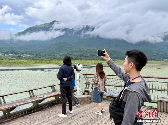 8月18日,臺灣嘉賓在騰沖北海濕地賞景。陸希成 攝