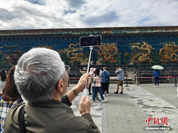 8月24日,霍晉明在山西大同拍攝九龍壁。程小路 攝