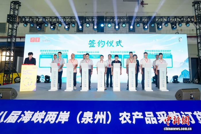 9月9日,第十八屆海峽兩岸(泉州)農產品采購訂貨會在福建南安閉幕。圖為簽約儀式。南安市委宣傳部供圖