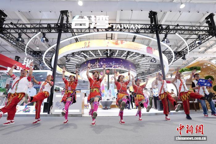 9月10日,2025年中國國際服務貿易交易會在北京首鋼園開幕。圖為臺胞在臺灣形象展外表演臺灣少數民族舞蹈。 張祥毅 攝