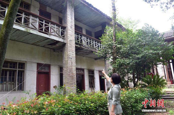 武夷山市檔案館館長李夷介紹武夷山文廟舊址那棟斑駁的青磚小樓——昔日400多名臺胞的宿舍。 中新網記者 張麗君 攝