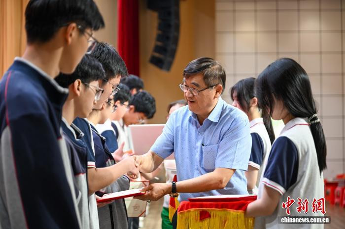 吳發彬為優秀學生發放獎學金。臺州臺辦供圖