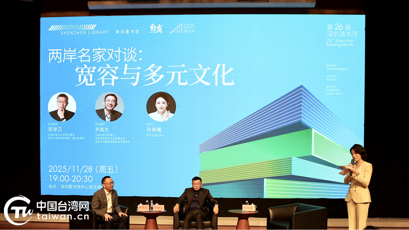 中國臺灣網12月3日訊 11月28日晚,以“寬容與多元文化”為主題的兩岸名家對談活動在深圳圖書館中心館舉辦。這是第26屆深圳讀書月“AI時代愛閱讀”系列活動之一。